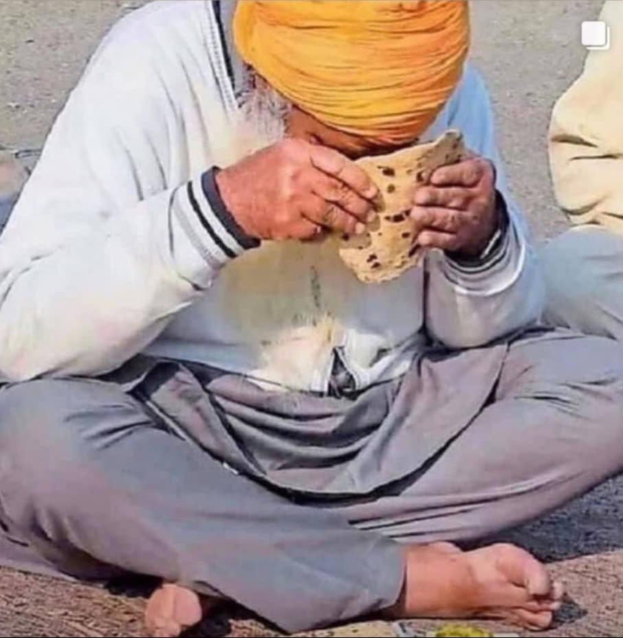 The protest is being led by farmers from the Northern State of Punjab and joined by other states such as Bihar, Haryana and Rajasthan. “The protests aren’t just about Punjab; they are for every hard working farmer in India.” Organisations such as Khalsa Aid are providing free food, shelter, blankets, washroom facilities are more. The community spirit has been second to none and the protesters have remained in high spirits. Sikhs refer to this as Chardi Kala translating to eternal optimism, ever progressive and being in a state of joy. The image below captures humility in its truest form.
